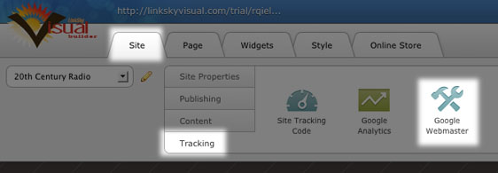 1. Go back to your LinkskyVISUAL site and make sure you are in the Sitebuilder. (Keep Google Webmaster open in a separate window.)