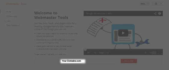 On the Webmaster Tools homepage, you will see a welcome message and below it, a box to add your site's URL. Paste or type the URL into the box and click on "Add A Site".
